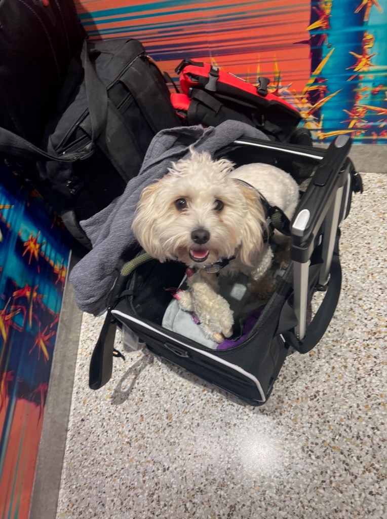The day of travel finally arrived and we hit the road! I enjoy long car rides because I get to sleep the whole time. Then we got to what mom and dad said is called the airport and our fun adventure began! So many smells and people! It was awesome. I always like meeting new people because they usually smile and tell me I’m a good boy. Everyone there was so nice and I even met a few other doggy friends!